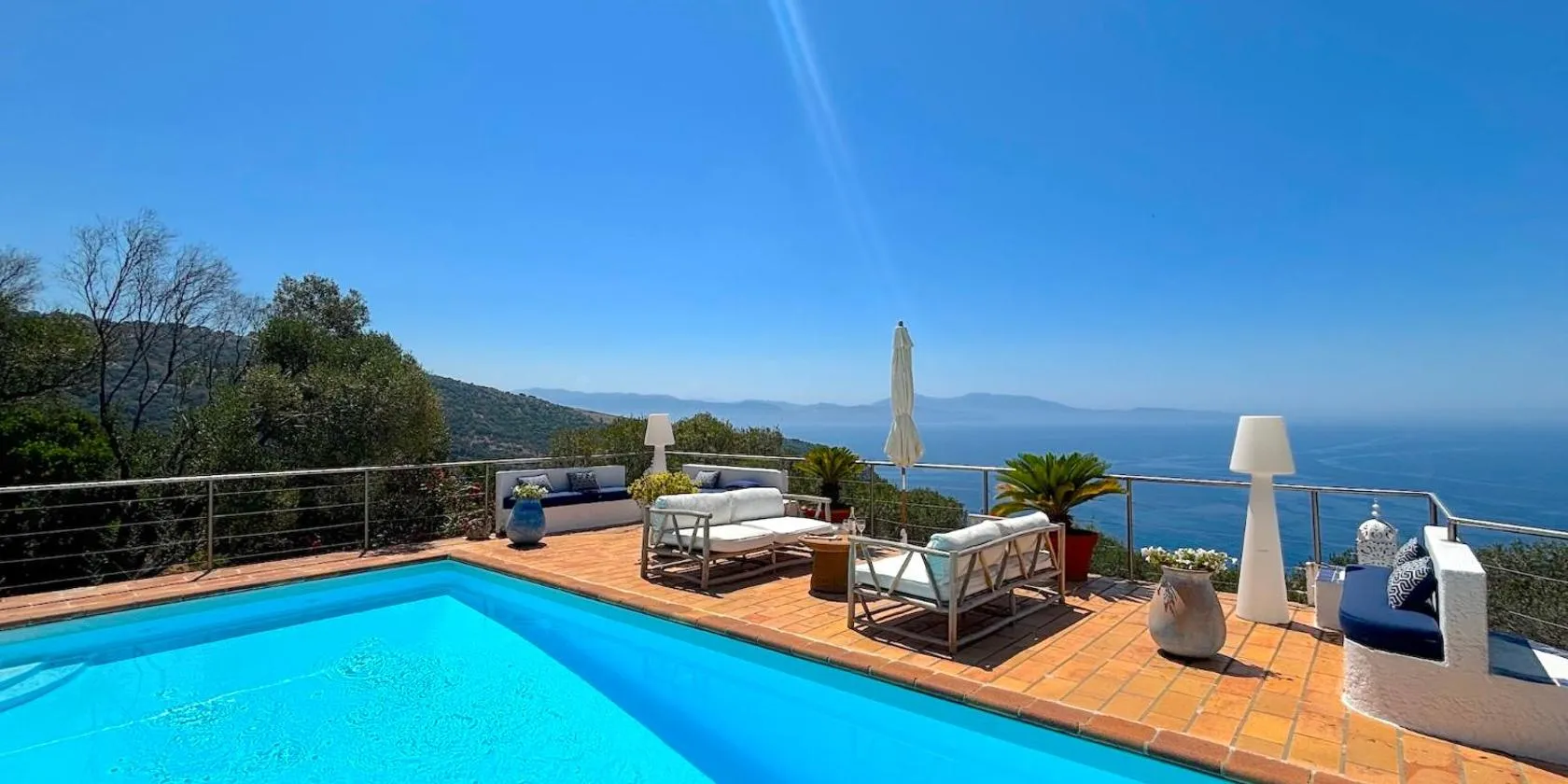 Die Unterkunft Villa Montalbo vue mer avec grande terrasse & plage à proximité - idéale famille et groupe de 2 à 10 personnes, die über einen Garten, eine Gemeinschaftslounge und eine Terrasse verfügt...