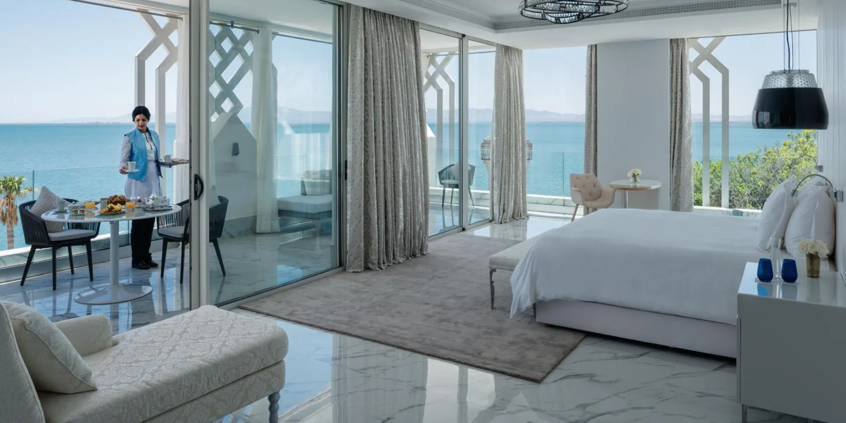 Die Unterkunft Residence La corniche Étage 4, die über Wassersportmöglichkeiten und einen Tennisplatz verfügt, bietet Übernachtungsmöglichkeiten in Nador mit kostenlosem WLAN und Meerblick.