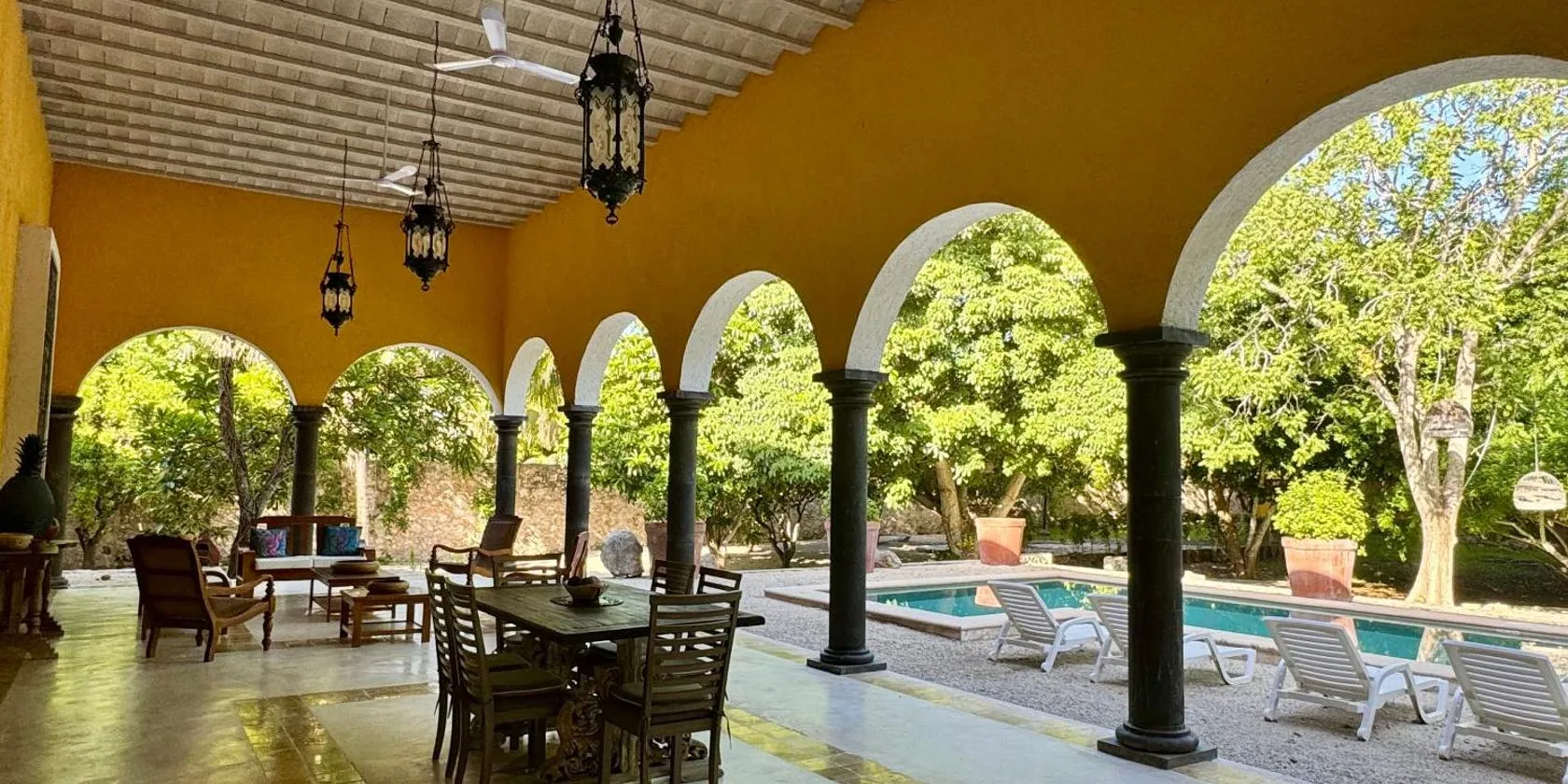 Die Unterkunft Hacienda Shambalante ist in Izamal gelegen und bietet Übernachtungsmöglichkeiten mit kostenlosem WLAN einer Klimaanlage und Zugang zu einem Garten mit einem Außenpool.