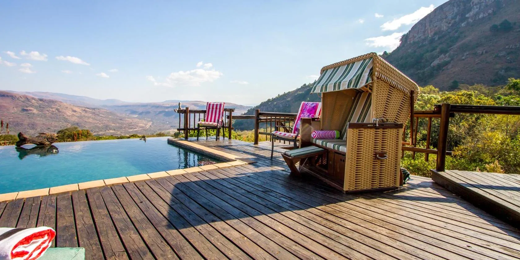 Die Unterkunft Mbizane Escarpment Retreat mit Bergblick in Schoemanskloof bietet Übernachtungsmöglichkeiten mit einem Außenpool, einer Gemeinschaftslounge, einer Terrasse, einem Restaurant und...