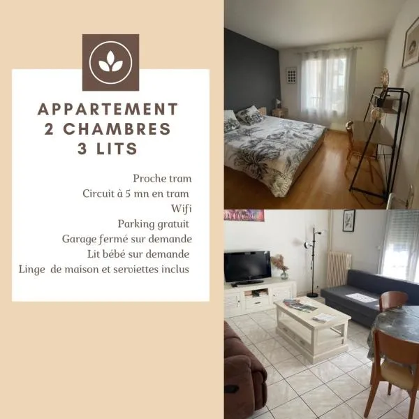 Gelegen in Le Mans und nur 1,6 km von Rennstrecke von Le Mans, bietet die Unterkunft Appartement proche de l'entrée des 24h Übernachtungsmöglichkeiten mit Gartenblick, kostenlosem WLAN und einem...