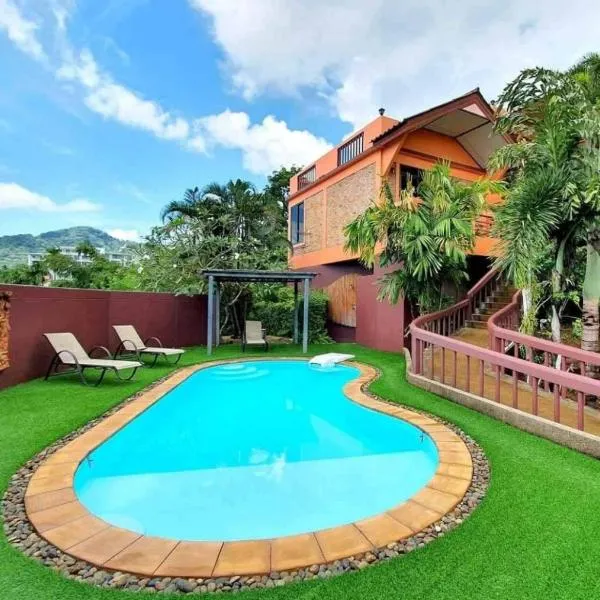 Die Unterkunft The Cozy House mit Meerblick in Strand Karon bietet Übernachtungsmöglichkeiten mit einem Außenpool, einem Garten, einer Terrasse und einer Bar.