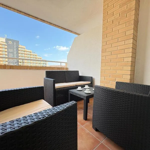 Die Unterkunft ACV - Isla Park-1ª Linea Planta 9 Frontal Interior, die über einen saisonalen Außenpool, einen Garten und eine Terrasse verfügt, bietet Übernachtungsmöglichkeiten in Oropesa del Mar mit...