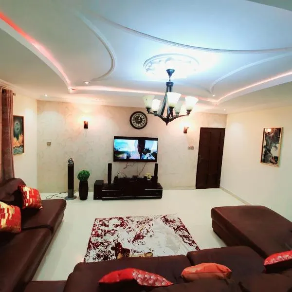 Well furnished and very spacious apartment in Wuye bevindt zich in Abuja, op 3,2 km van Magic Land Abuja en 15 km van IBB Golf Club. Deze accommodatie heeft een balkon en gratis privéparkeren.