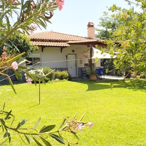 Die Unterkunft Traditional beach house besticht durch Gartenblick und Übernachtungsmöglichkeiten mit einer Terrasse und einem Balkon, ungefähr 15 km von Anthropologisches Museum & Höhle von Petralona...