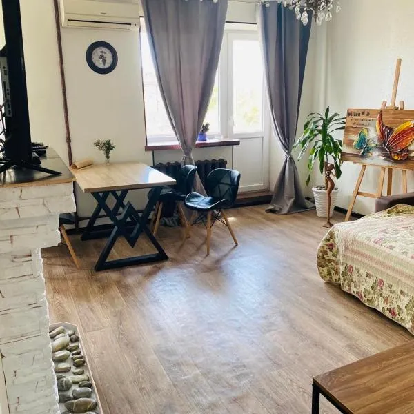 Gelegen in Mykolajiw, nur 2,6 km von Strand Strilka entfernt, bietet die Unterkunft Студія з внутрішнім півповерхом. Übernachtungsmöglichkeiten mit einer Terrasse und kostenlosem WLAN.