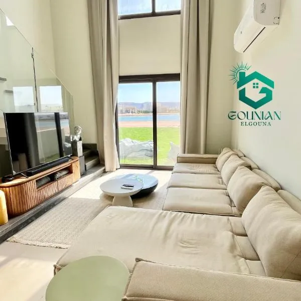 Boasting sea views, Studio FOR RENT IN ELWAZRA EREA BEFOR EL GOUNA 5 MINUTES ONE BEDROOM offers accommodation with a private beach area, pool with a view and a garden, around a few steps from Moon...