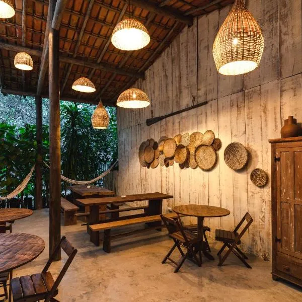 Hostel Caraivando features a fitness centre, garden, a shared lounge and terrace in Caraíva. 700 metres from Caraiva Beach, the hostel features a bar and barbecue facilities.