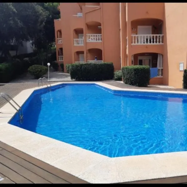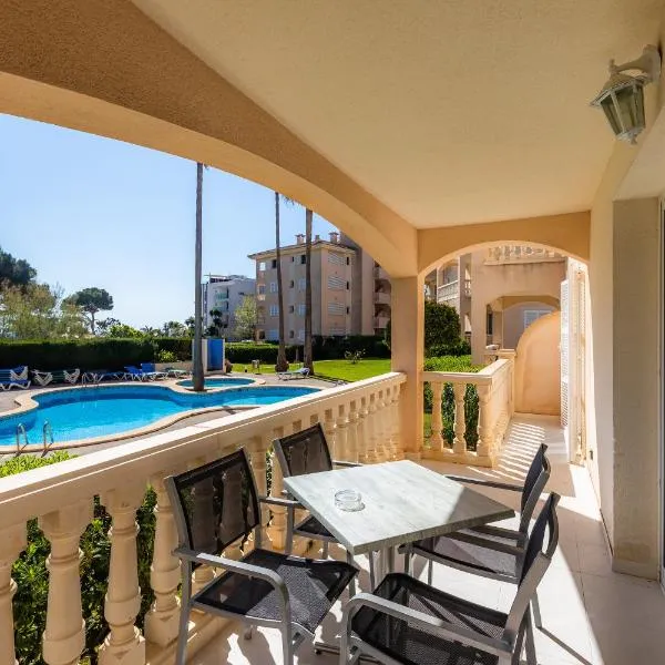 Die Unterkunft Apto con Terraza 101 verfügt über Gartenblick und Übernachtungsmöglichkeiten mit einem Außenpool und einem Balkon, ungefähr 1,3 km von Playa Cala Millor entfernt.