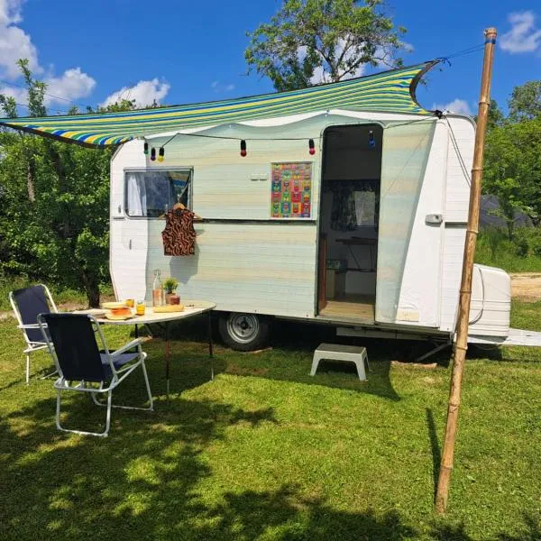Die Unterkunft Wild Camping am Fluss besticht durch Flussblick und einen saisonalen Außenpool, einen eigenen Strandbereich sowie eine Terrasse, ungefähr 29 km von Kathedrale Saint Lizier entfernt.