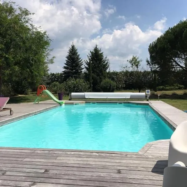 Gelegen in Mornand, 38 km von Zénith Saint-Étienne Métropole, 14 km von Feurs hippodrome und 39 km von Cité du Design entfernt, bietet die Unterkunft Gîte spacieux avec piscine et animaux acceptés...