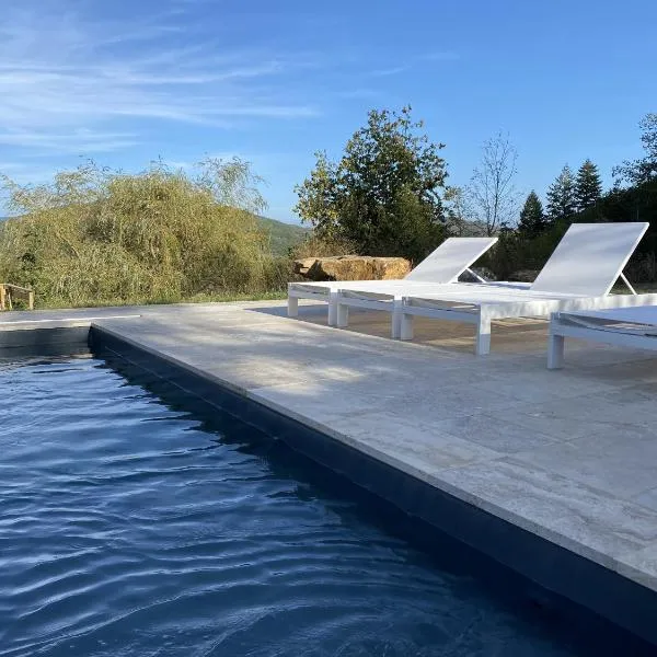 Die Unterkunft Gîte Les Paredous, die über einen saisonalen Außenpool, einen Garten und Grillmöglichkeiten verfügt, bietet Übernachtungsmöglichkeiten in Broquiès mit kostenlosem WLAN und Poolblick.
