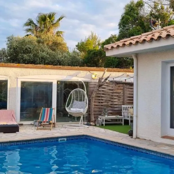 Featuring air-conditioned accommodation with a saltwater pool, L'Onde calme, charmante villa avec piscine is set in Saint-Laurent-de-la-Salanque.
