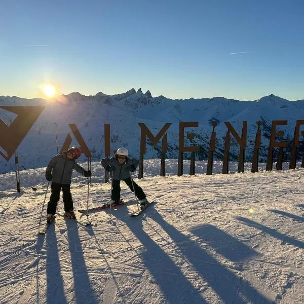 Gelegen in Valmeinier, 41 km von Les Sybelles entfernt, bietet die Unterkunft La cime de Valmi - A deux pas du front de neige Übernachtungsmöglichkeiten mit einem saisonalen Außenpool, kostenlosem...
