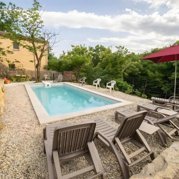 Die Unterkunft Piscine privative le champ des oiseaux verfügt über Gartenblick und Übernachtungsmöglichkeiten mit einem Balkon und einer Kaffeemaschine, ungefähr 38 km von Felsbrücke Pont d'Arc...