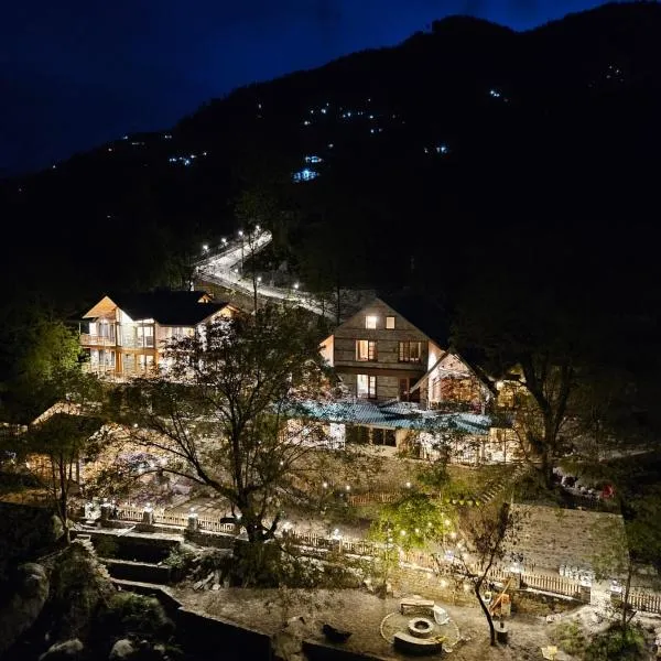 The Luxe Cascades JIbhi ligt in Jibhi in de regio Himachal Pradesh, en heeft een balkon en uitzicht op de rivier. De accommodatie heeft uitzicht op de stad en de bergen.