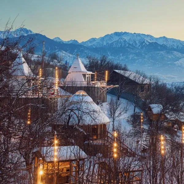 Gelegen in Baybulak, in der Region Gebiet Almaty, hat die Unterkunft Tabi Village Mountain Nest einen Balkon und Bergblick.