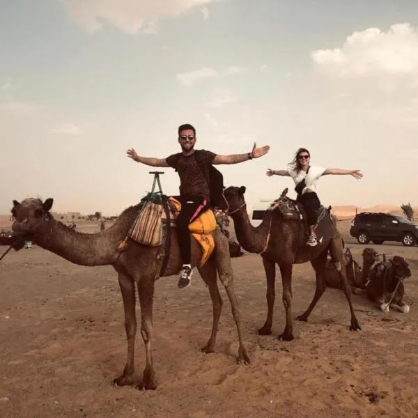 Merzouga sunset camp ligt in Merzouga. Deze luxe tent is voorzien van gratis privéparkeren en gratis WiFi. Er is een als buffet aangeboden ontbijt en halal ontbijt beschikbaar bij de luxe tent.