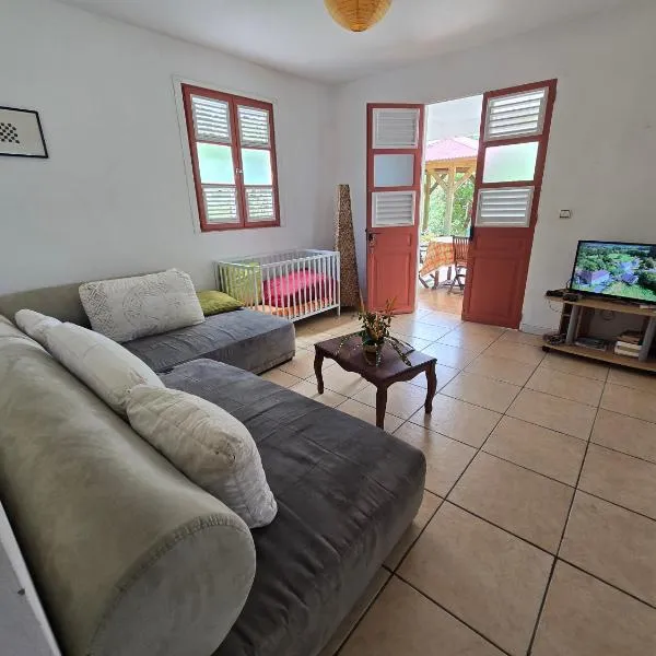 Die Unterkunft Ti Kaz chez Anita et Bruno F3 proches des plus belles plages sud de la Martinique, die über einen Außenpool, einen Garten und eine Terrasse verfügt, bietet Übernachtungsmöglichkeiten in...