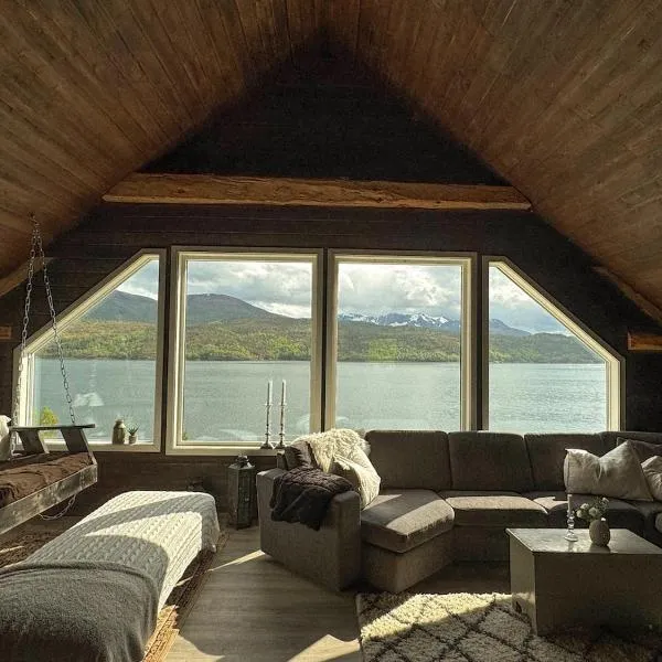L’hébergement Koselig og usjenert hytte med fantastisk utsikt og solforhold se situe à Gjerset, dans la région Nordland. Il comprend un patio et offre une vue sur la montagne.