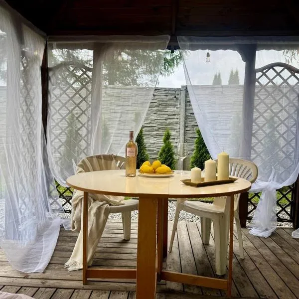 Die Unterkunft Domki Na Winnicy Zator Przeciszów besticht durch Gartenblick und Übernachtungsmöglichkeiten mit einer Terrasse und einer Kaffeemaschine, ungefähr 16 km von Auschwitz entfernt.