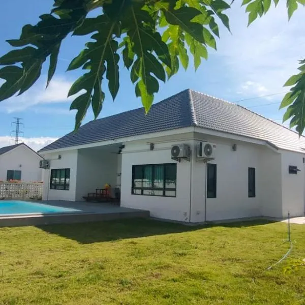 Die Unterkunft Baan Bua Homestay & Poolvilla mit Poolblick in Ban Pa Mak (1) bietet Übernachtungsmöglichkeiten mit einem Garten, einer Terrasse und einer Bar.