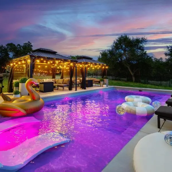 Gelegen in Dripping Springs, bietet die Unterkunft Ultimate Hill Country Retreat, POOL, Creek, Sleeps 10 Übernachtungsmöglichkeiten mit einem eigenen Pool und kostenlosem WLAN.