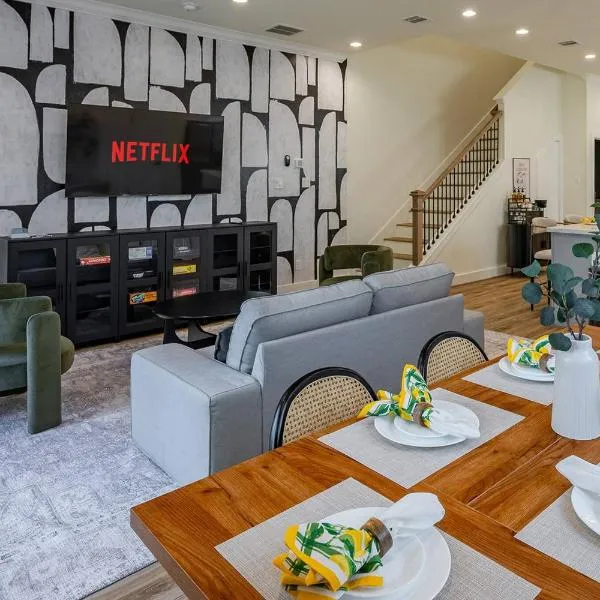 Modern 3 Bedroom with 85 Inch TV is gelegen in Houston, op 18 km van Minute Maid Park en 19 km van George R. Brown Convention Center, en biedt gratis WiFi, een tuin en airconditioning.