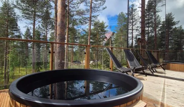 Boasting air-conditioned accommodation with a pool with a view, lake view and a patio, AuroraHut at Sauna Retreat is situated in Rovaniemi.