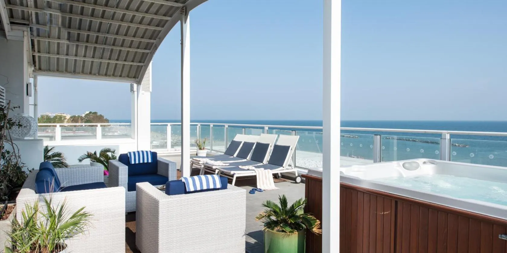Mit Blick auf den Strand bietet die Unterkunft Miami Suite mit 4 Sternen Übernachtungsmöglichkeiten in Bellaria-Igea Marina und hat kostenlose Fahrräder, einen Garten und eine Gemeinschaftslounge.