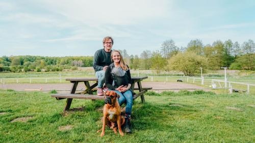 wir sind Maria und John Bostelmann und auf dem Bild sieht man noch unseren Hund "Django". Seit 2021 gehört uns der wunderschöne Maleksberg und wir bemühen uns, dieses Idyll mehr und mehr zum Leben zu erwecken.