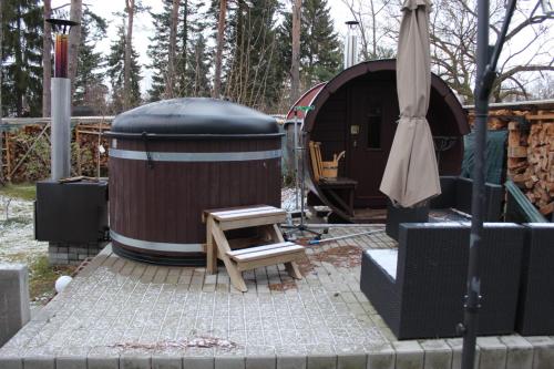 Gelegen in Spreenhagen, bietet die Unterkunft Sommerhausrelaxing für gestreßte Menschen eine Terrasse mit Poolblick und Gartenblick sowie einen saisonalen Außenpool, eine Sauna und einen Whirlpool. Dieses Ferienhaus verfügt über einen kostenlosen Privatparkplatz und befindet sich in einer Gegend mit Möglichkeiten zum Wandern und Fahrradfahren. Dieses Ferienhaus mit Klimaanlage ist versehen mit 1 Schlafzimmer, Satelliten Flachbild-TV, einem Essbereich, einer Küche mit einem Kühlschrank und einem Wohnzimmer. In diesem Ferienhaus werden Handtücher und Bettwäsche angeboten. Ein Garten, Möglichkeiten zum Grill und ein Kinderspielplatz werden von der Unterkunft Sommerhausrelaxing für gestreßte Menschen zur Verfügung gestellt. East Side Gallery liegt 46 km von der Unterkunft Sommerhausrelaxing für gestreßte Menschen entfernt, während U-Bahnhof Alexanderplatz 47 km entfernt ist. Der nächstgelegene Flughafen ist der Flughafen Berlin Brandenburg, 37 km von der Unterkunft Sommerhausrelaxing für gestreßte Menschen entfernt.
