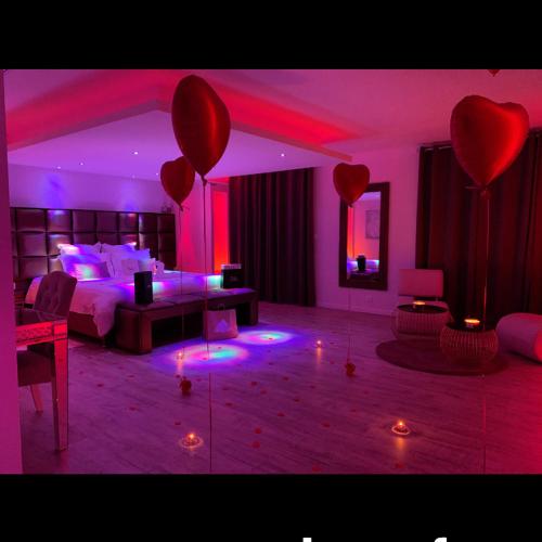 Le Spalace est un établissement totalement privatisé comprenant un jacuzzi 6 personnes, un sauna 4 personnes, une double douche à l’italienne, une salle de détente avec rétroprojecteur, une suite parentale luxueuse avec son lit exceptionnelle fait sur mesure, un bar avec thé, café, chocolat et boisson non alcoolisé, une terrasse et un jardin