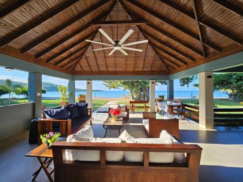 Beachfront and Pool: Villa Fantasy private beach and private pool in Rio Bueno offers direct beachfront access and an outdoor swimming pool. Guests can relax on the terrace or in the lush garden.
