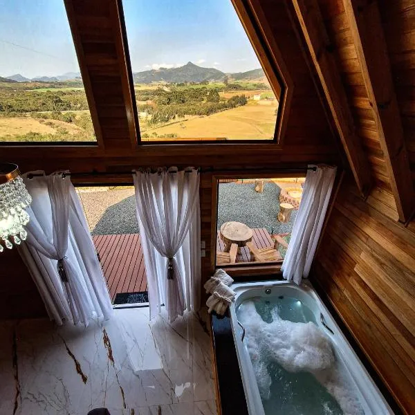 Boasting air-conditioned accommodation with a patio, Cabana Dois Amores. Destino romântico. Is situated in Alfredo Wagner. The property has lake and river views.