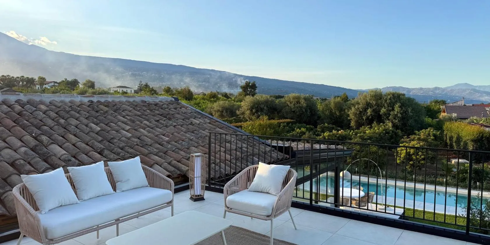 Die Unterkunft Euthalia mit Bergblick in Riposto bietet Übernachtungsmöglichkeiten mit einem Außenpool, einem Garten, einer Gemeinschaftslounge, einer Terrasse und Grillmöglichkeiten.