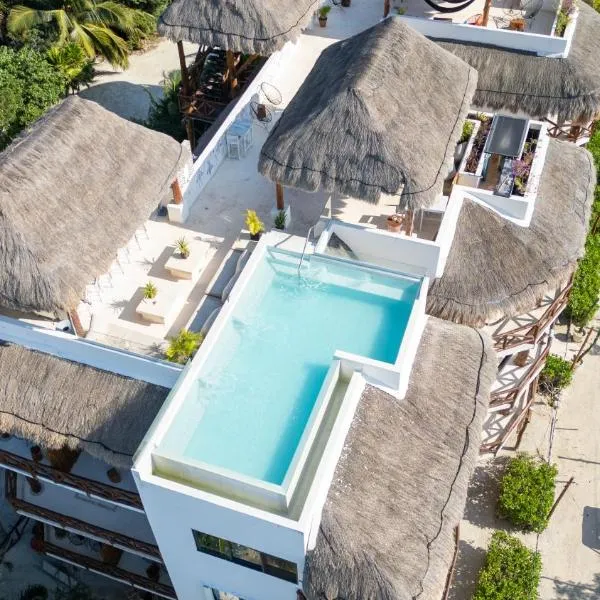 Die Unterkunft Casa Hridaya Hotel Boutique, die in Holbox, 50 m von Strand Playa Holbox entfernt gelegen ist, verfügt über Übernachtungsmöglichkeiten mit einem Außenpool, einem kostenlosen...