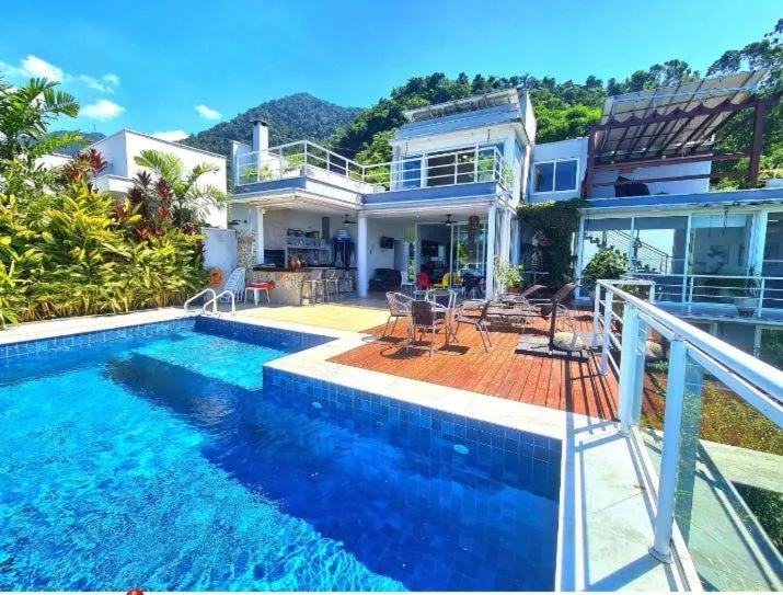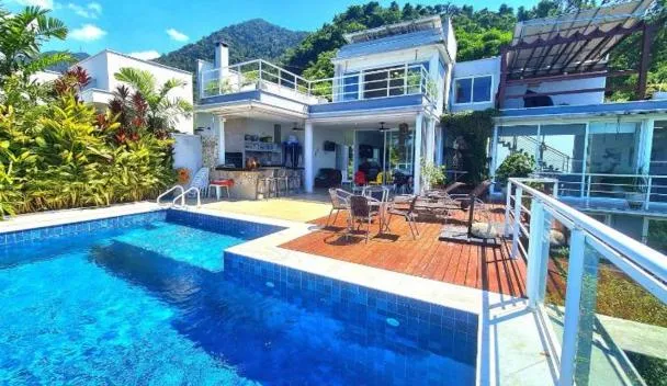 Die Unterkunft Casa inteira com vista para o Mar a 80 Mt da Praia, die in Ilhabela gelegen ist, 90 m von Strand Praia da Ilha das Cabras und 2,4 km von Fähranleger entfernt, besticht durch kostenloses...