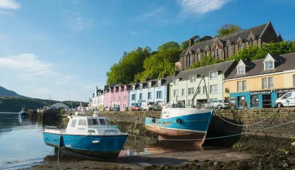 Set in a converted cluster of fisherman’s houses along Portree Harbour the hotel offers plenty of character and quirks. There are 17 en-suite bedrooms with all expected facilities.