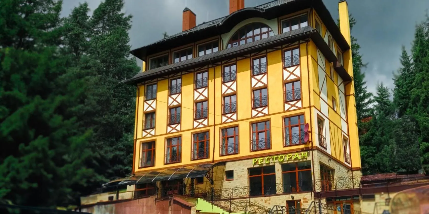 ДАН features a terrace, restaurant and bar in Dragobrat. The hotel has family rooms. At the hotel, every room comes with a wardrobe and a flat-screen TV.