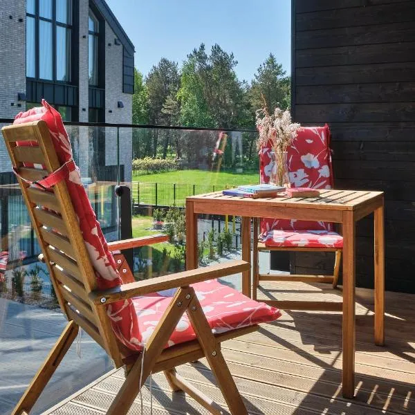 Die Unterkunft White Pearl Apartment verfügt über einen Balkon mit Gartenblick, einen saisonalen Außenpool sowie eine Terrasse und befindet sich in Palanga, nahe Strand Vaganupe und 7 km von Palanga...