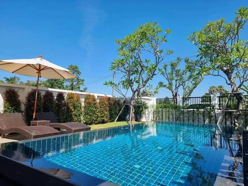 Die Unterkunft BAAN DALAH POOL VILLA, die über einen Außenpool, einen Garten und eine Terrasse verfügt, bietet Übernachtungsmöglichkeiten in Buri Ram mit kostenlosem WLAN und Poolblick.