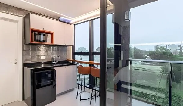 ZStay - Studios in the Heart of Batel Curitiba provides accommodation within less than 1 km of the centre of Curitiba, with free WiFi, and a kitchenette with a microwave, a fridge and a stovetop.