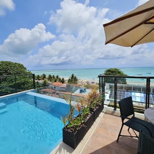Apartamento pé na areia em Maragogi bevindt zich in Maragogi en heeft een buitenzwembad en uitzicht op de zee.