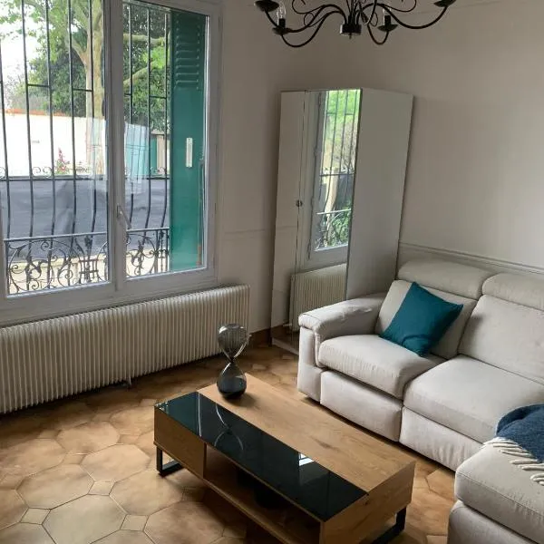 Die Unterkunft Charmant Duplex, Calme & Confort à 10 min de Paris besticht durch Gartenblick und Übernachtungsmöglichkeiten mit einem Balkon und einem Wasserkocher, ungefähr 6,4 km von Palais des...