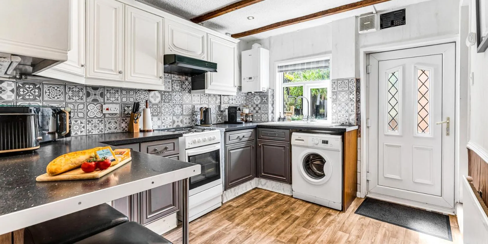 Die Unterkunft Sherlock's House -Moray Entire house Two bedroom 5 beds Private free parking & WiFi Flat TV Garden Shops verfügt über Gartenblick und Übernachtungsmöglichkeiten mit einer Veranda /...