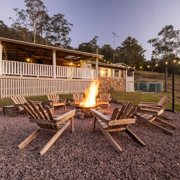 Boasting air-conditioned accommodation with a patio, Flame Tree Chalet is situated in Booroobin. This property offers access to a balcony, free private parking and free WiFi.