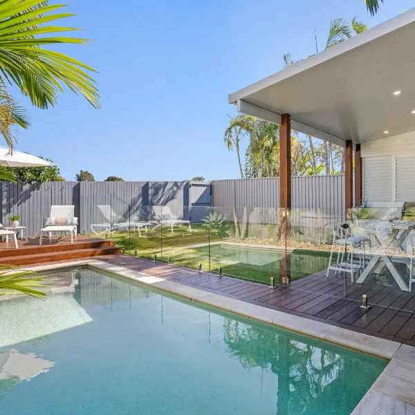 Situé à Gold Coast, l’hébergement Palm Beach Perfection - Luxe Coastal Escape offre une vue sur le jardin et comprend une piscine privée ainsi qu’une terrasse.