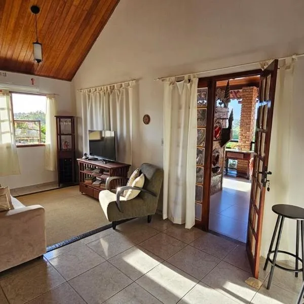 Casa de Campo Novo gravatá em condomínio, lazer completo com piscina compartilhada, churraqueira e forno a lenha privado e uma vista espetacular e com aquele friozinho beschikt over een buitenzwembad,...