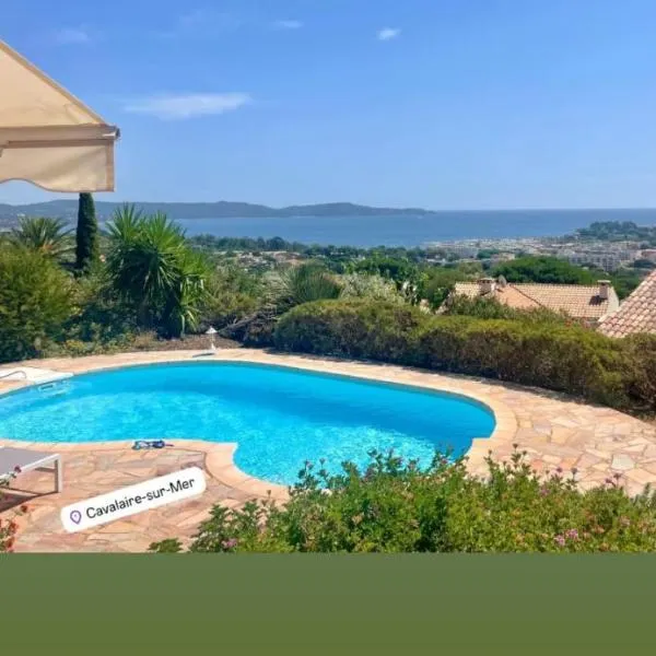 Situé à Cavalaire-sur-Mer et offrant une vue sur la mer, l’hébergement Villa Perlazur - Piscine et Vue Mer possède une piscine extérieure.